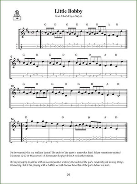 Old-time tunes tend to be played in fiddle-friendly keys like D, G, A (major and minor), and C. Although you can play in most of those keys out of DAD tuning, the music really comes alive when you re-tune and let those drones ring. Tunings include DAA, DAD, DGD, AAA and more. The author includes notes on how to re-tune your dulcimer, as well as alternative tunings for some of the tunes.