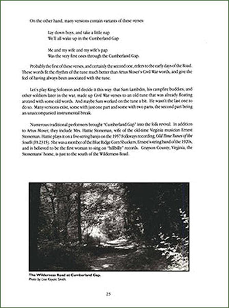 This collection of traditional music for the mountain dulcimer seeks to reunite this beautiful instrument with the people, the music, and the world from which it came. It tells the story of the Wilderness Road, a trail through the Appalachian Mountains from Gate City, Virginia, to Fort Boonesboorugh, Kentucky, blazed by Daniel Boone, and links it to the history and heritage of the mountain dulcimer. Numerous photographs and maps help tell the story, and each tune in the book includes a historical anecdote describing its origin.